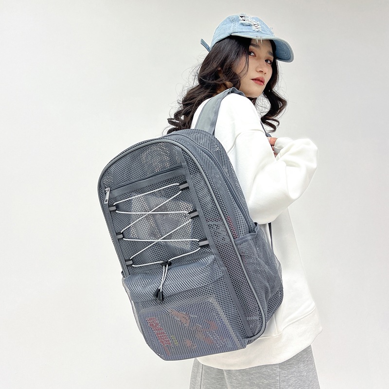 Tas Punggung Pantai Olahraga Modis Model Baru Tas Ransel Musim Panas Jaring Transparan Tas Sekolah Siswa Sekolah Menengah Pertama Kapasitas Besar