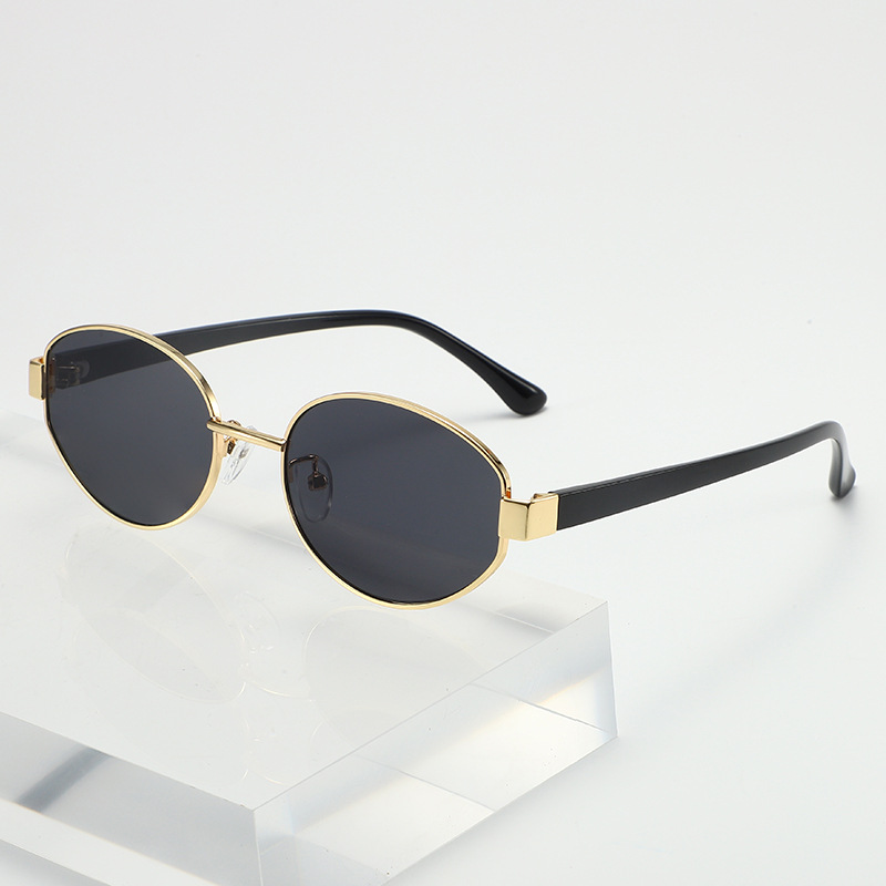 欧美复古椭圆形太阳镜潮男女网红款尼龙墨镜街拍凹造型INS防紫外