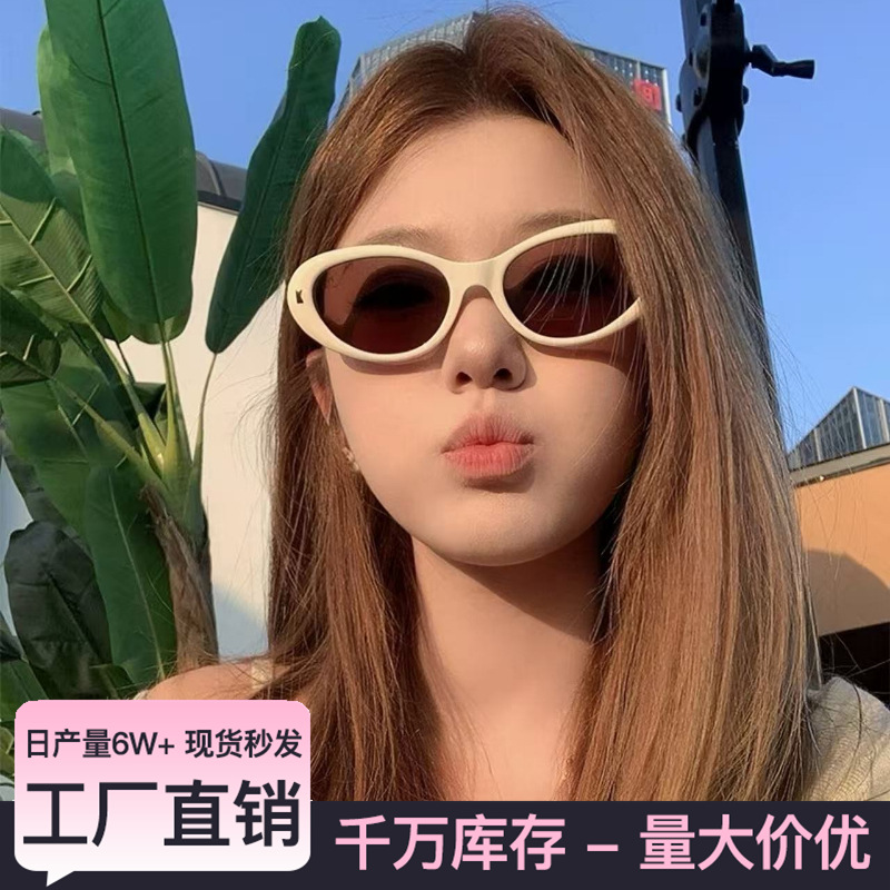 奶白色猫眼复古墨镜女2025新款防紫外线遮阳辣妹凹造型度假太阳镜