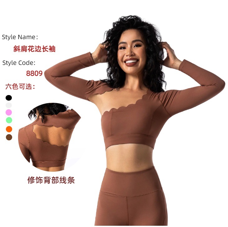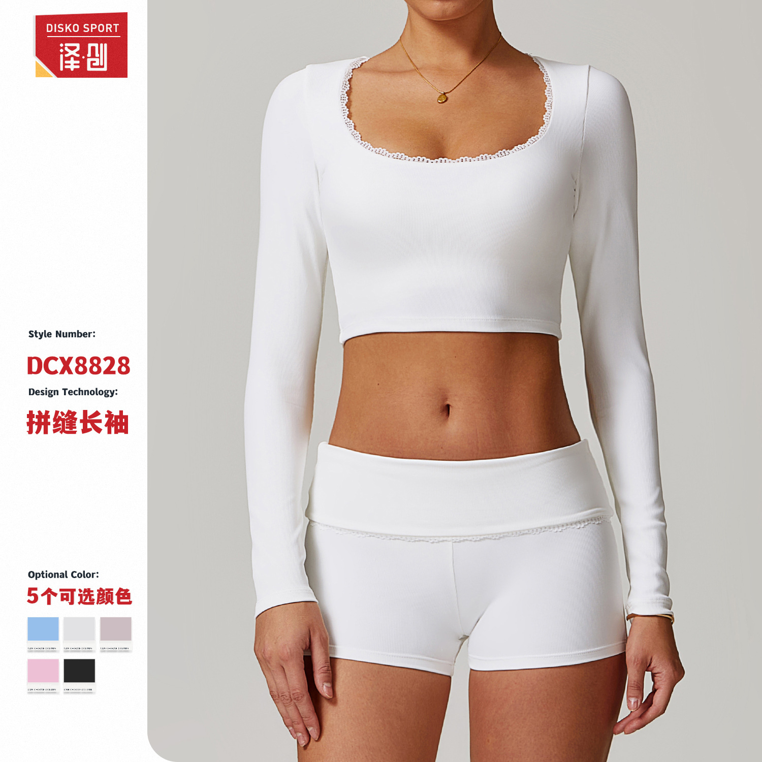 清仓款不退不换泽创螺纹紧身长袖透气速干瑜伽上衣健身运动服8828