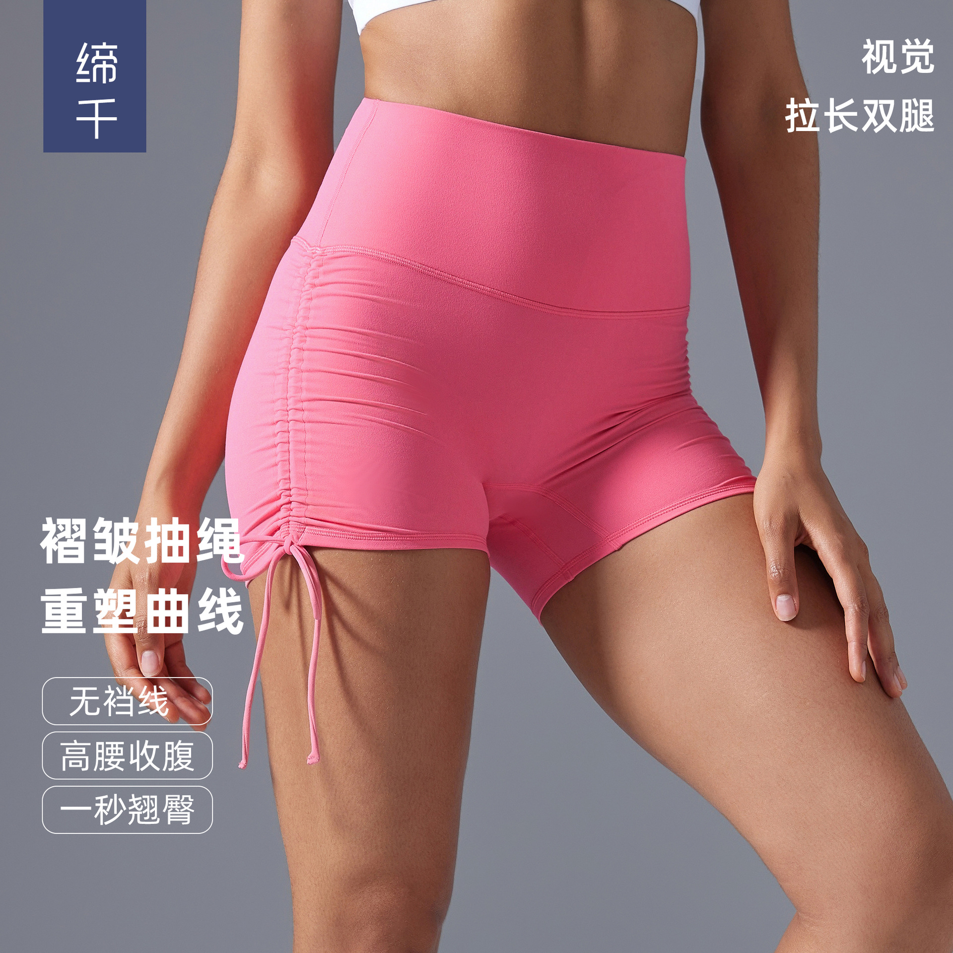 Celana Pendek Yoga Ketat Pinggang Tinggi Celana Pendek Olahraga Kebugaran Pinggul Mengangkat Pinggul Terlihat Langsing Lipit Tanpa T-Line Wanita Musim Panas D25109