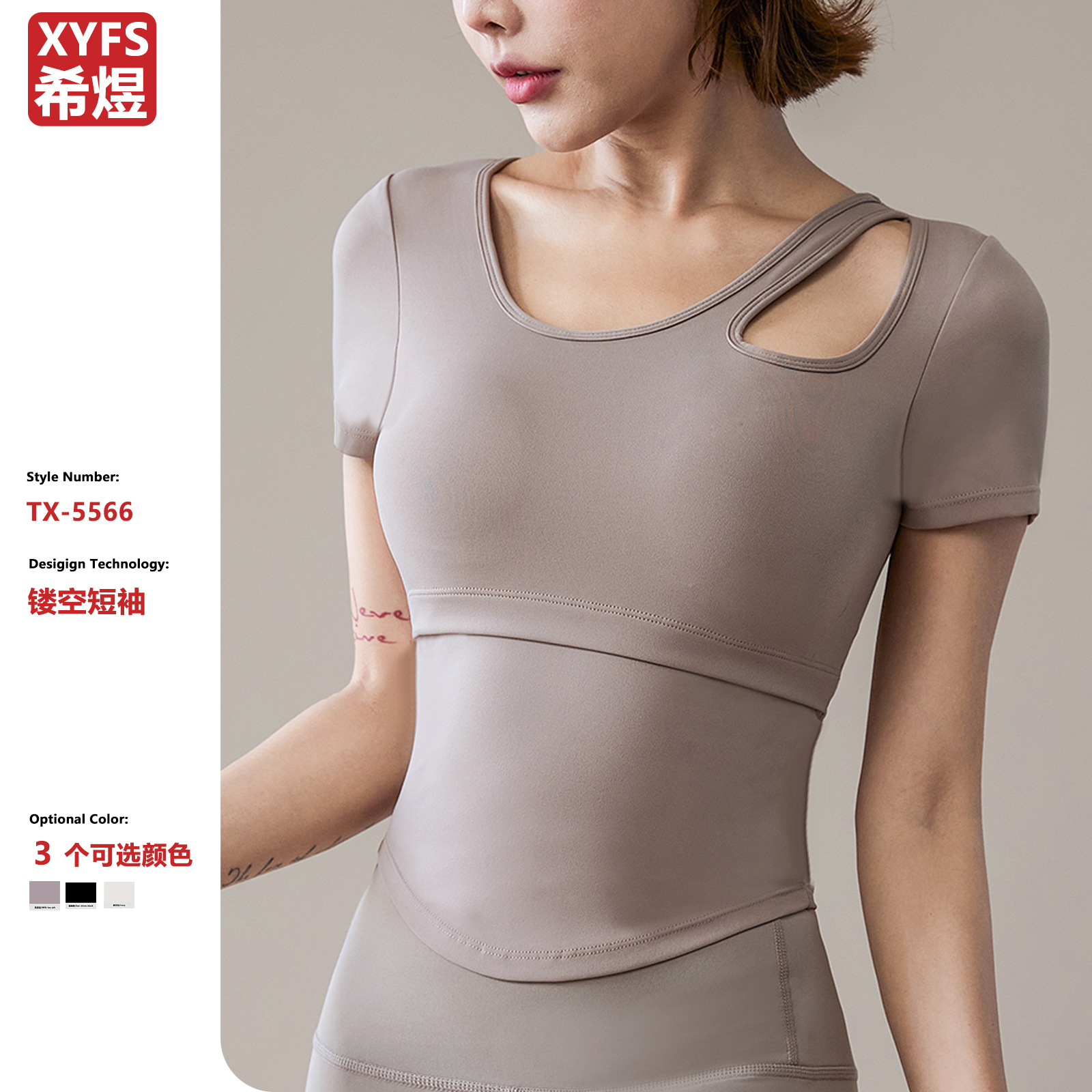 Ze Chuang Musim Panas Yoga Lengan Pendek Berongga Ketat Anti Guncangan Kaus Olahraga Nude Atasan Olahraga Lari Kebugaran 4501
