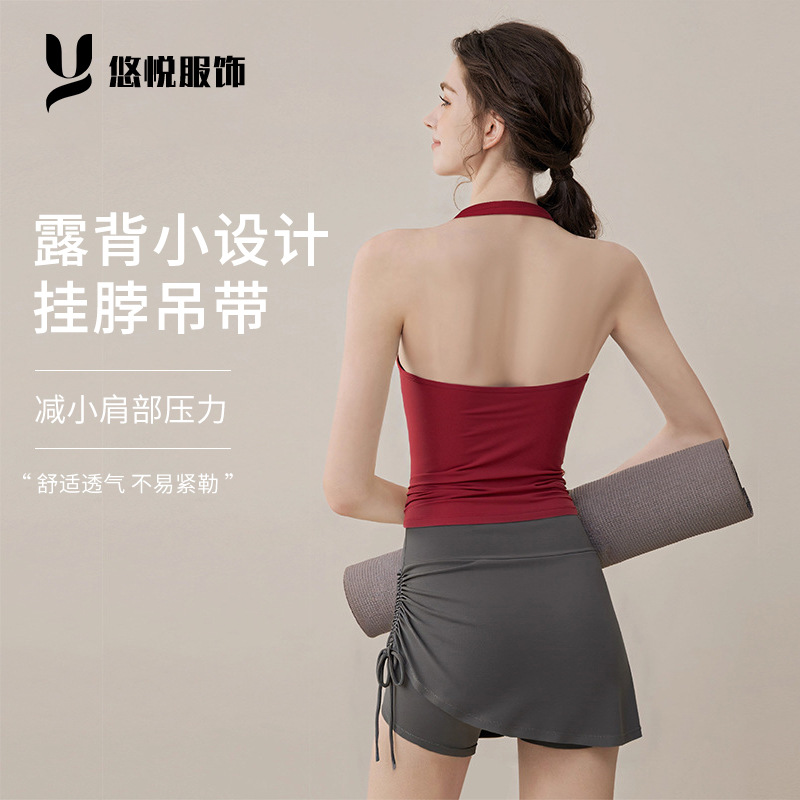 夏季一体式挂脖运动内衣美背缓震外穿快干跑步上衣瑜伽背心文胸