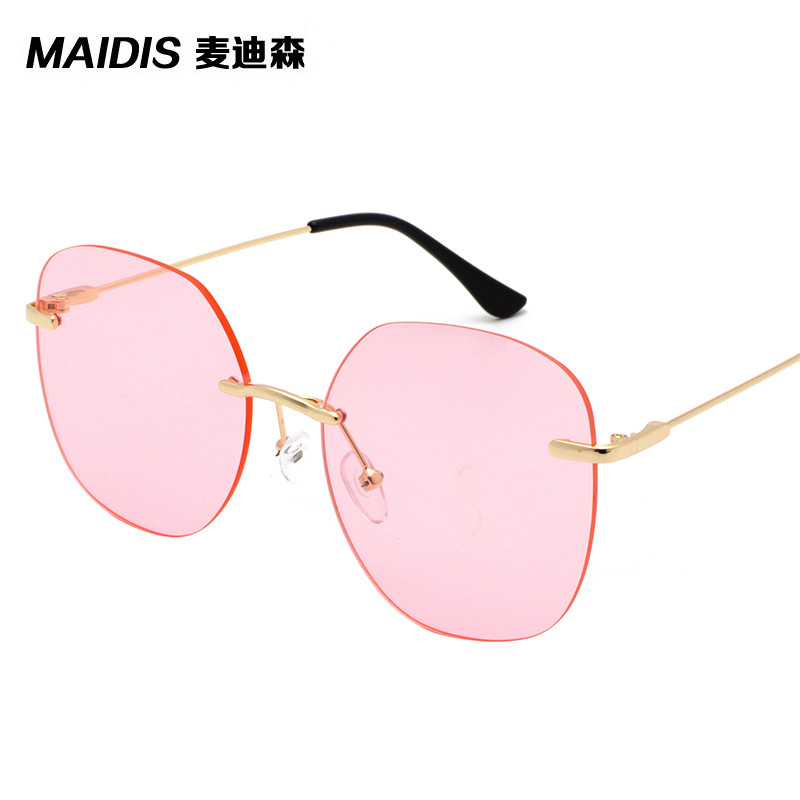 Jett kacamata hitam tanpa bingkai Pria Wanita, kacamata pelindung terik matahari bingkai logam modis tren 3444 untuk pria dan wanita
