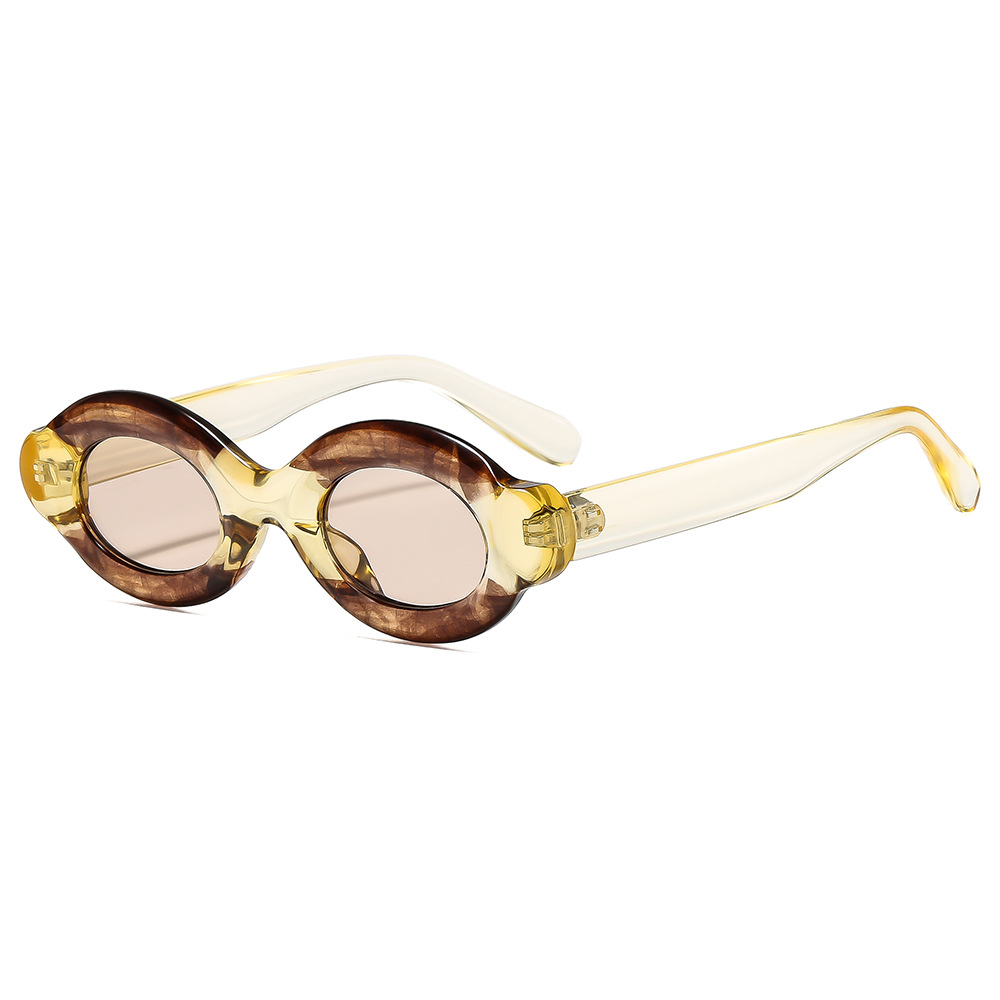 厚框气泡椭圆形时尚撞色拼色太阳镜男女跨境欧美百搭高级充气墨镜