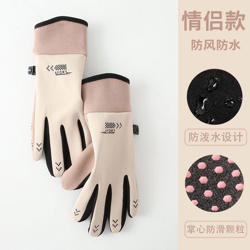 De beludru sarung tangan termal musim gugur dan musim dingin, sarung tangan olahraga luar ruangan wanita, sarung tangan renda tahan angin anti selip layar sentuh tahan dingin