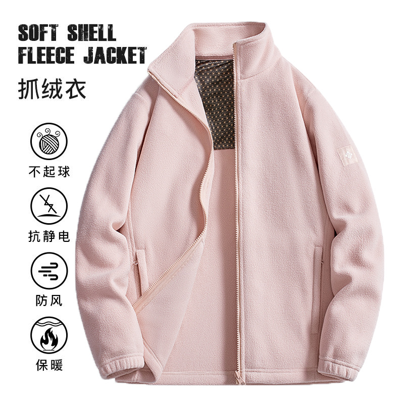 Jaket bulu karang luar ruangan Jaket gunung wanita jaket bulu lapisan tebal hangat bulu polar lengan panjang untuk pria