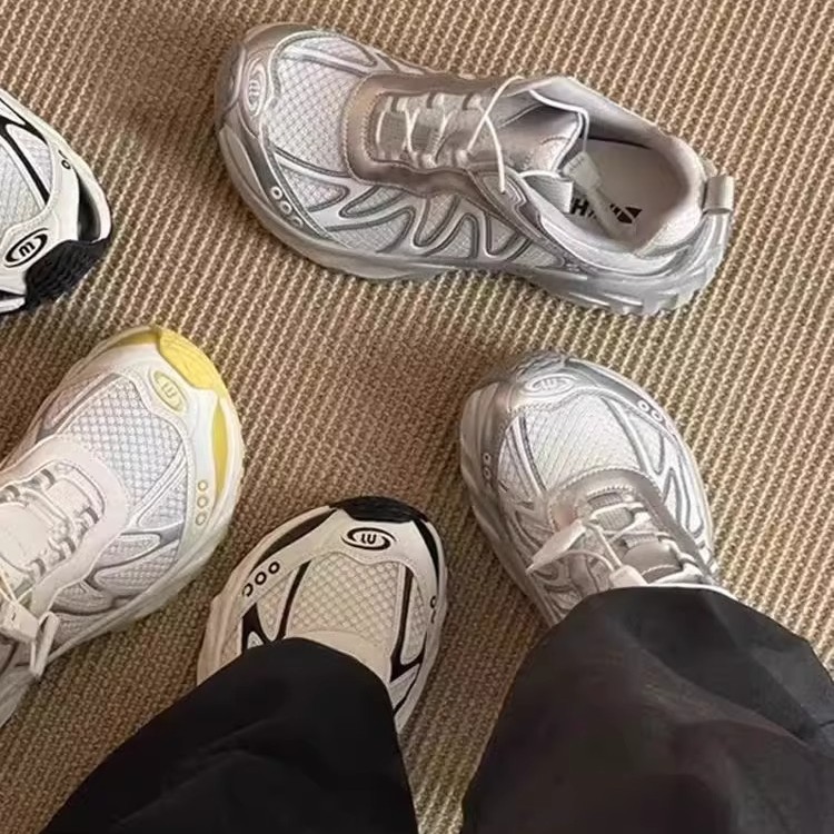 Sepatu Olahraga Warna Abu-abu Perak Permukaan Jaring Kecil Model Sama dengan Zhao Lusi Sepatu Ayah Mudah Dipadu Padan Sepatu Lari Bernapas Kasual Wanita