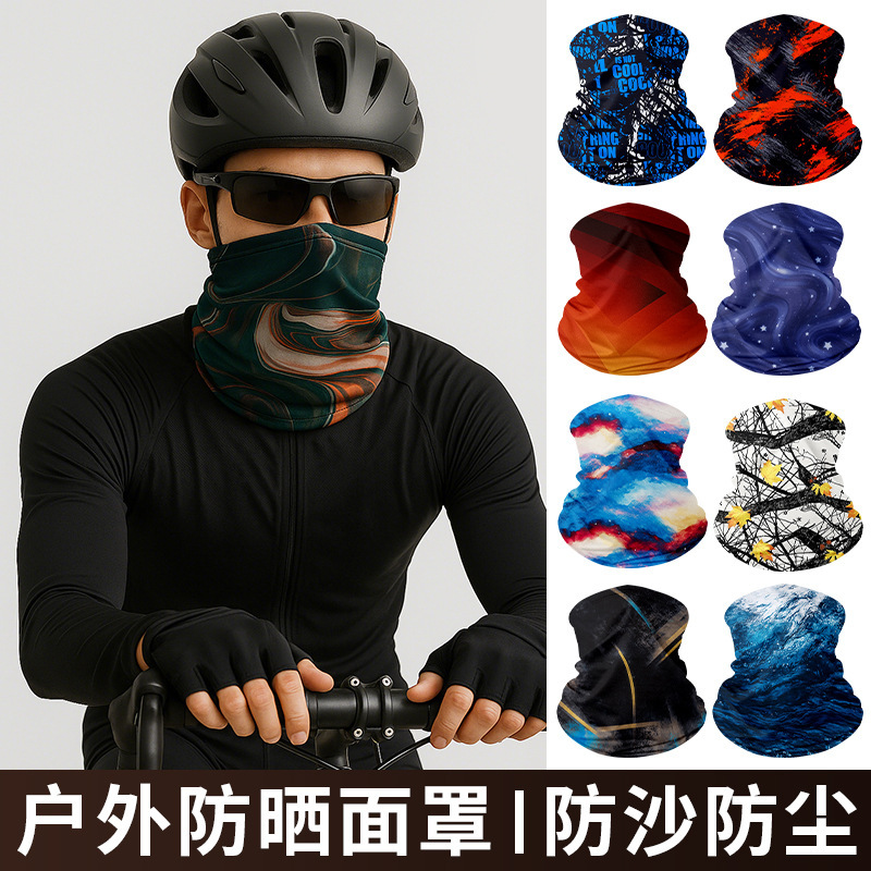 Masker sepeda musim panas, bersepeda di luar ruangan masker sutra es syal pelindung matahari kerah kamuflase lintas batas grosir