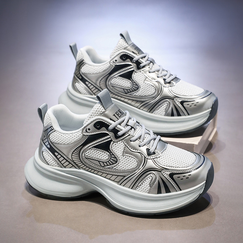 Sepatu lari pria, sepatu ayah pria gaya Korea, sepatu olahraga sol tebal kasual trendi 2024