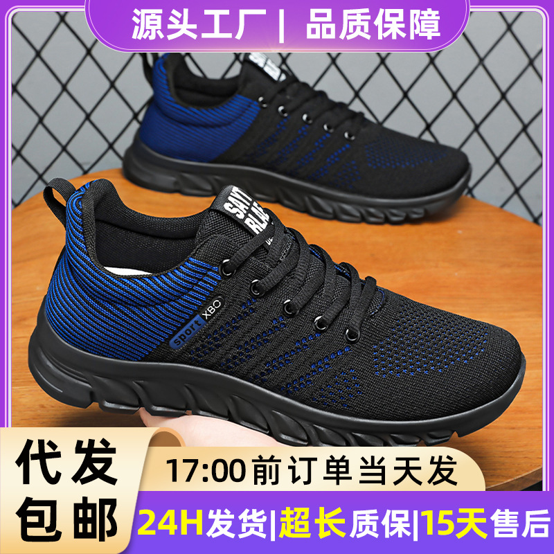 Sepatu Olahraga Permukaan Woven Terbang Model Baru Musim Gugur Sepatu Pria Ringan Trendi Modis Sepatu Lari Kasual Nyaman Sol Lembut