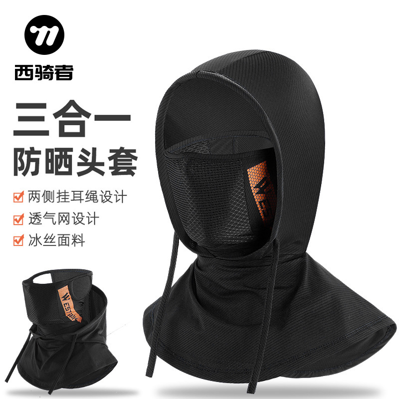 Western rider masker berkendara, pelindung kepala sutra es perlindungan matahari dengan kacamata lubang tutup kepala luar ruangan dapat bernafas sangat elastis