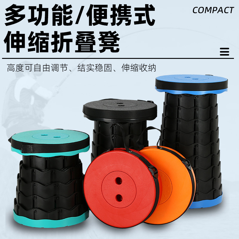 Bangku lipat berkemah portabel sederhana, kursi teleskopik dapat disesuaikan jaring luar ruangan kursi merah memancing bangku teleskopik
