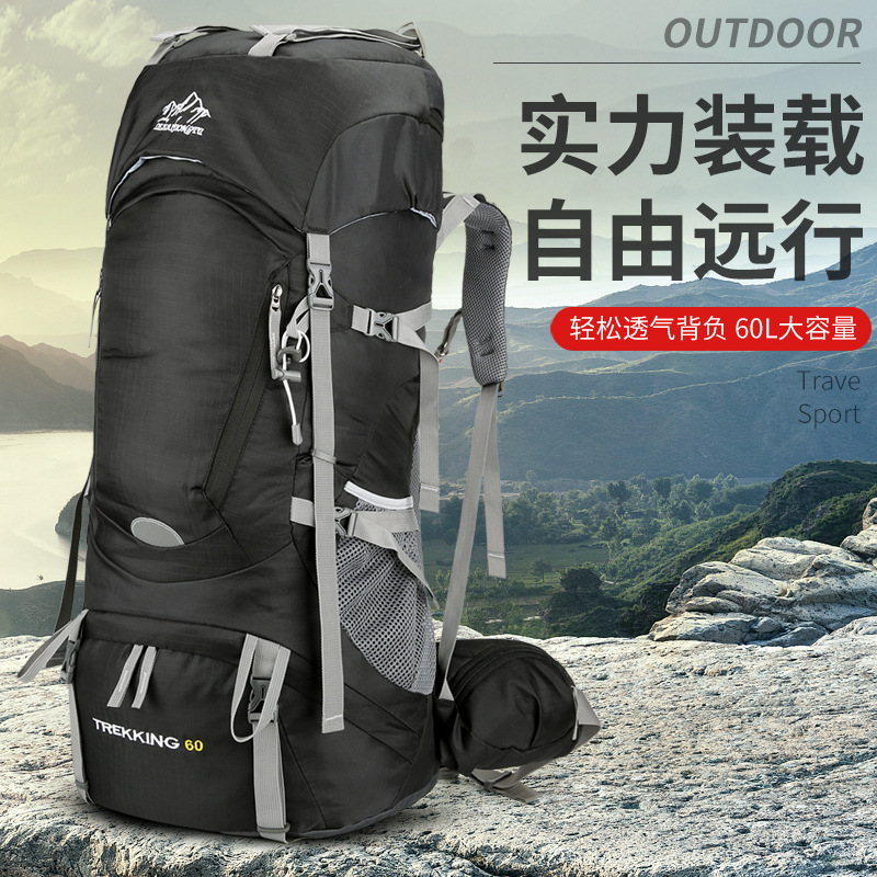 Tas Mendaki Gunung Profesional Kapasitas Besar Tas Trekking Tahan Air Luar Ruangan Pria Wanita Tas Ransel Berkemah 60 Liter