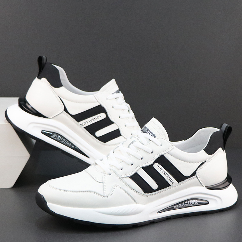 Sepatu kulit pria, sneaker sepatu lari lelaki kasual Sol empuk, ringan putih, musim semi 2024
