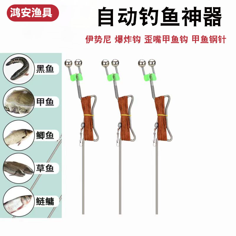 Baru sederhana memancing tanah plug otomatis Musim Semi kura-kura perak ikan mas hitam garis set hook tangan malas memancing artefak