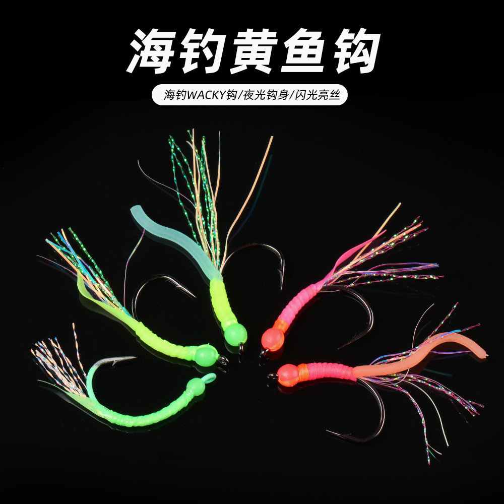 Baru impor memancing di laut kait ikan kuning perahu memancing bass ikan beras bercahaya tali kait pink hijau warna ajaib bercahaya kait grosir
