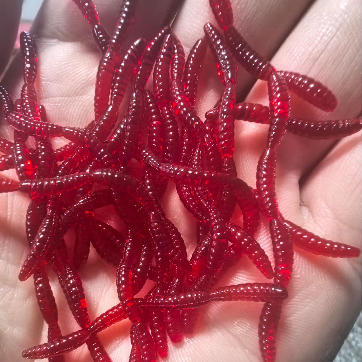 Kualitas tinggi simulasi cacing tanah merah umpan memancing lembut dan tidak ada gerinda menambahkan agen umpan food-grade