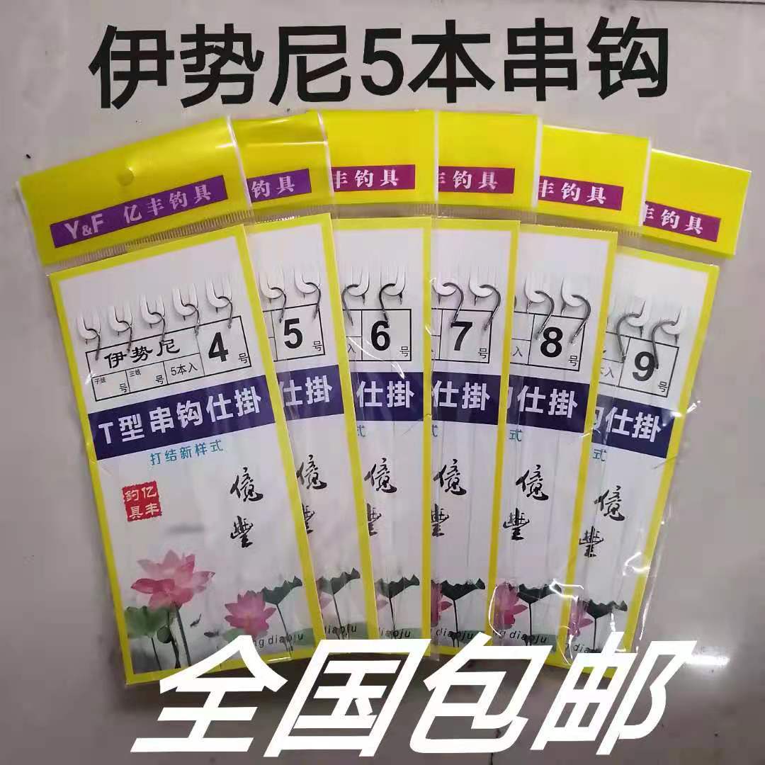 Pengiriman gratis Yifeng kait tali 5 batang rakit isini kait tali Shi menggantung benang nilon ikan mas kait tali selesai kelompok memancing