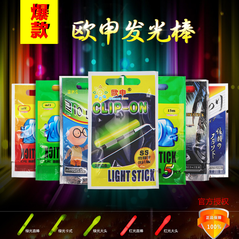 Oushen tongkat pancing bercahaya, tongkat memancing malam hari tipe kartu bercahaya 5 pak tongkat bercahaya perdagangan luar negeri grosir