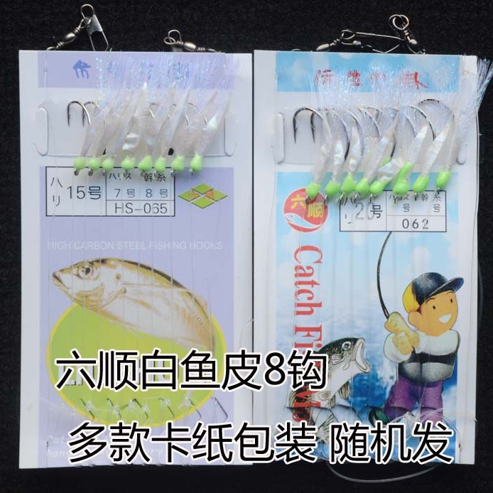 Liushun 8 putih kulit ikan kait tali kulit ikan nyata air segar wanita kait neon bercahaya mata kail ikan berduri perlengkapan