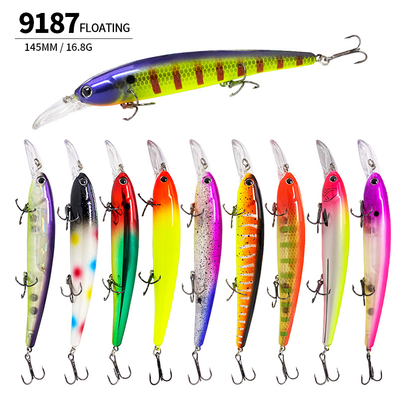 Umpan damino pancing laut mengambang, 145mm/16.8g tembakan panjang manik-manik bass bionik Luya umpan 9187