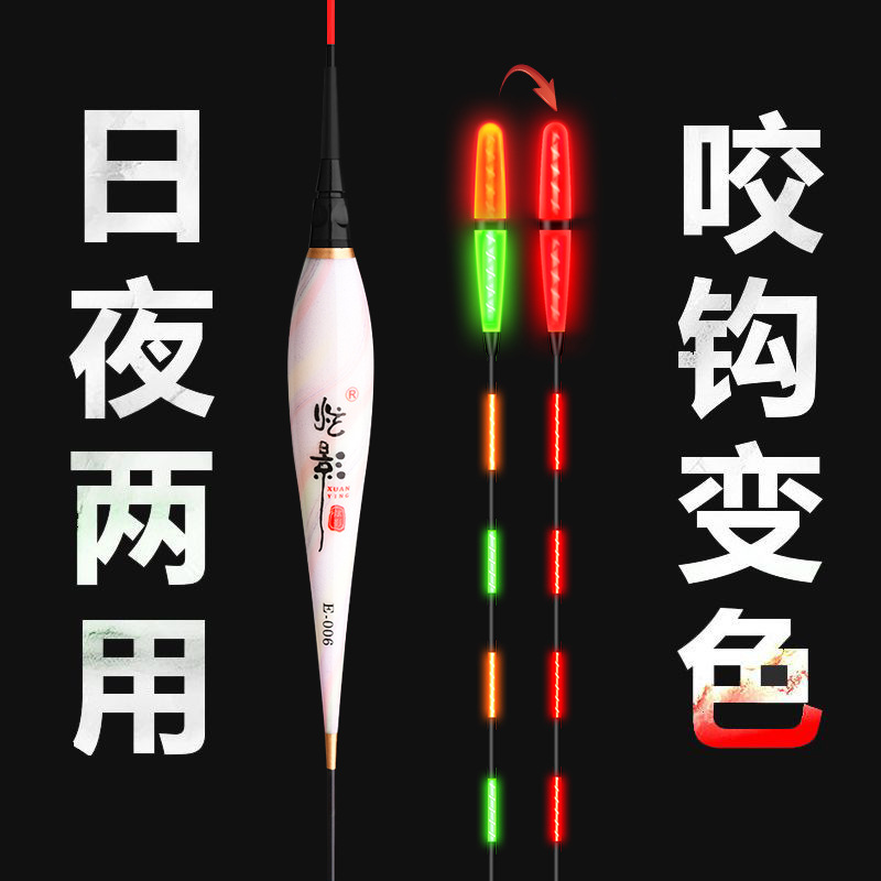 Pengapung bercahaya siang dan malam penggunaan ganda kait gigitan pengapung yang berubah warna bold eye-catching malam memancing elektronik float sangat sensitif pelampung ikan mas