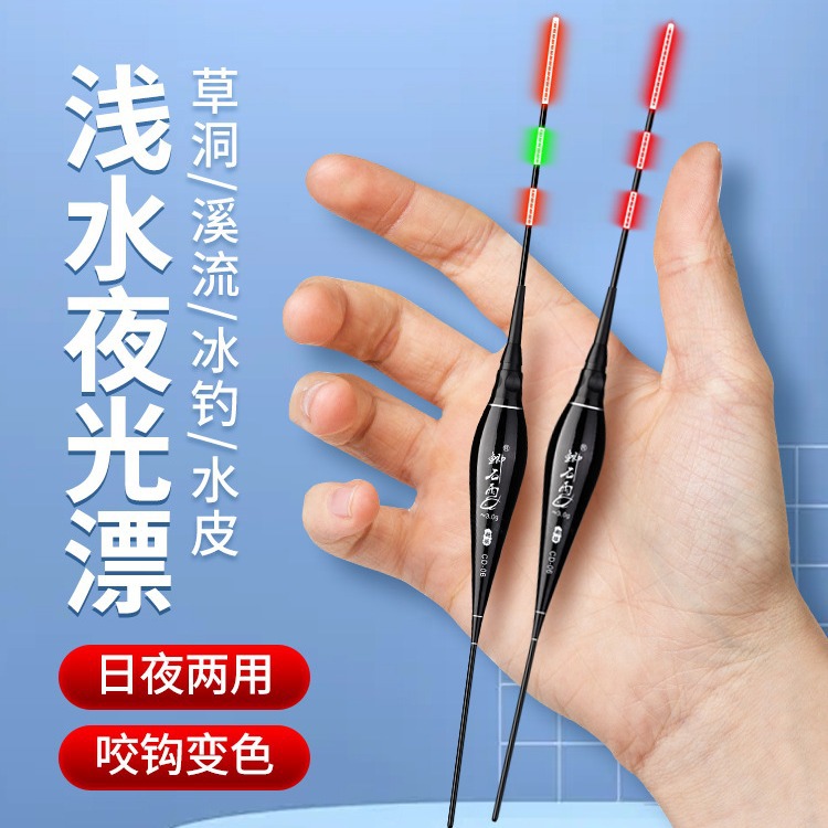 316 Luminous Float 0.8 Sangat Halus Ekor Ganda Kait Gigitan LED Berubah Warna Elektronik Floating Ikan Lele Siang dan Malam Penggunaan Ganda Float
