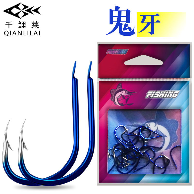 Jinhong perlengkapan memancing gigi segitiga baja karbon tinggi pengait datar tubuh tas butik biru menawan hantu gigi isini kait ikan penjualan langsung