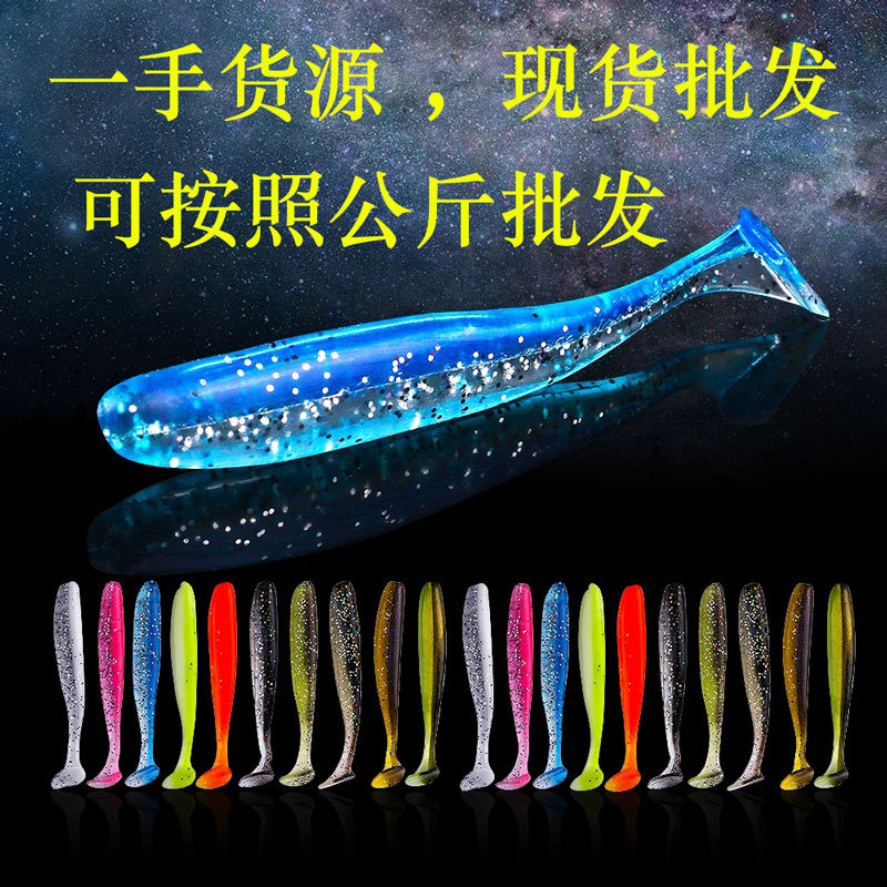 Luya lembut umpan fluktuasi ikan lembut cacing ikan silang mulut palsu umpan Simulasi dua warna T ekor dalam stok grosir 10 pak