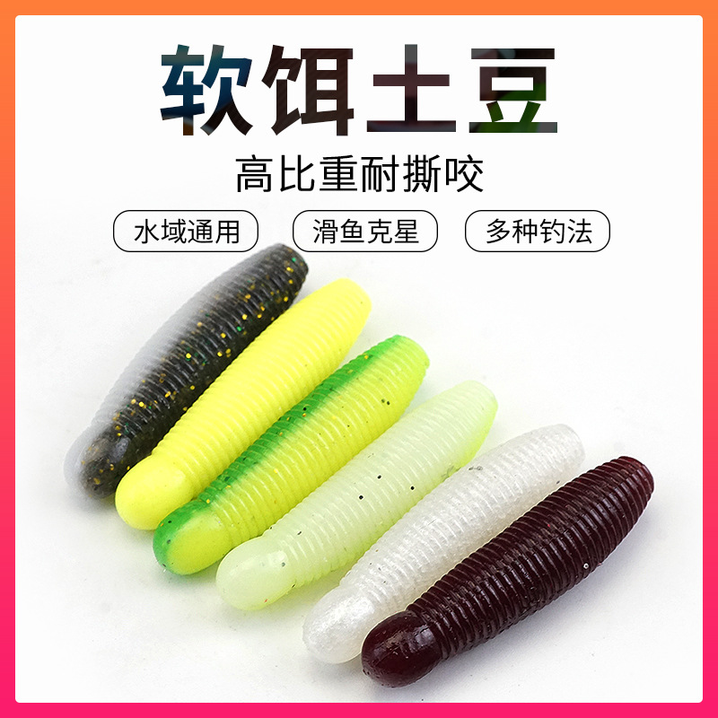 Umpan lembut kentang lubang hitam bass hitam Timbal Bebas ikan wastafel lambat garam cacing Luya umpan palsu umpan kait engkol