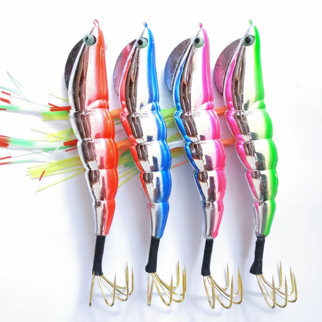 Electroplating bambu udang lima cakar kait emas umpan cumi-cumi ekspor Luya multi-bagian umpan palsu udang dengan kait umpan udang bambu