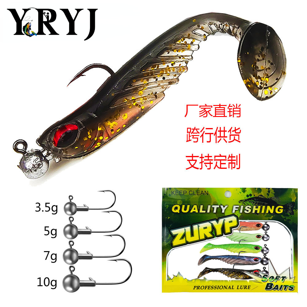 Luya Lima potong hardcover 3D mata ikan umpan lembut kepala kail ikan manik-manik mulut dan umpan Asia lainnya umpan imitasi ekor lembut berbentuk Khusus T tail