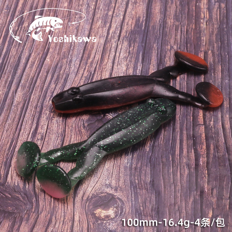 Umpan palsu shikawa Jichuan Luya, umpan lunak ekor katak T kelompok memancing hitam kodok air 10cm16.4g
