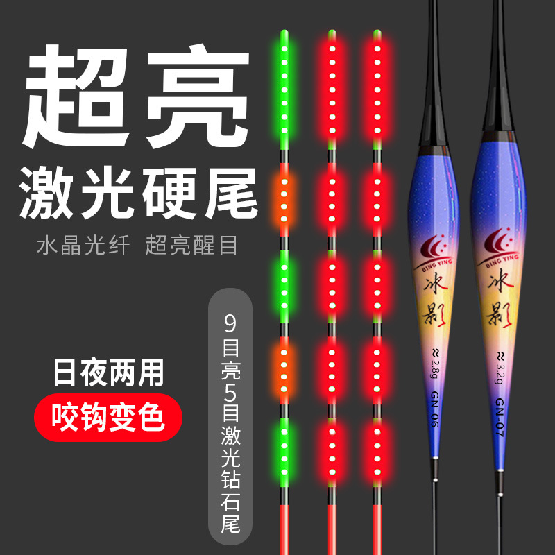 Ice shadow laser ekor bercahaya mengapung berlian ekor keras gigit kait warna berubah pengapung elektronik super terang siang dan malam penggunaan ganda pelampung ikan mas