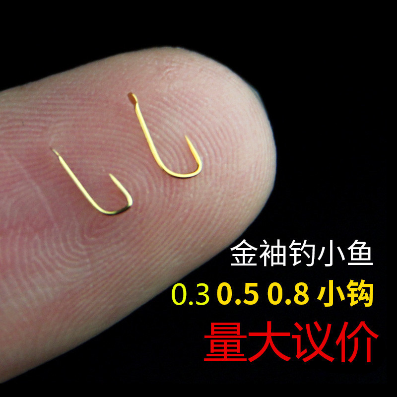 Lengan emas berduri tanpa duri 0,30.50.8 kait kecil kait ikan lele garis putih kecil kait halus kait ikan massal tajam pertunjukan emas