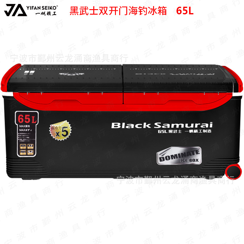 Memancing laut terisolasi kulkas 65 liter Yifan Seiko hitam prajurit lampu pintu ganda perahu memancing batu roda memancing kotak ikan berpendingin