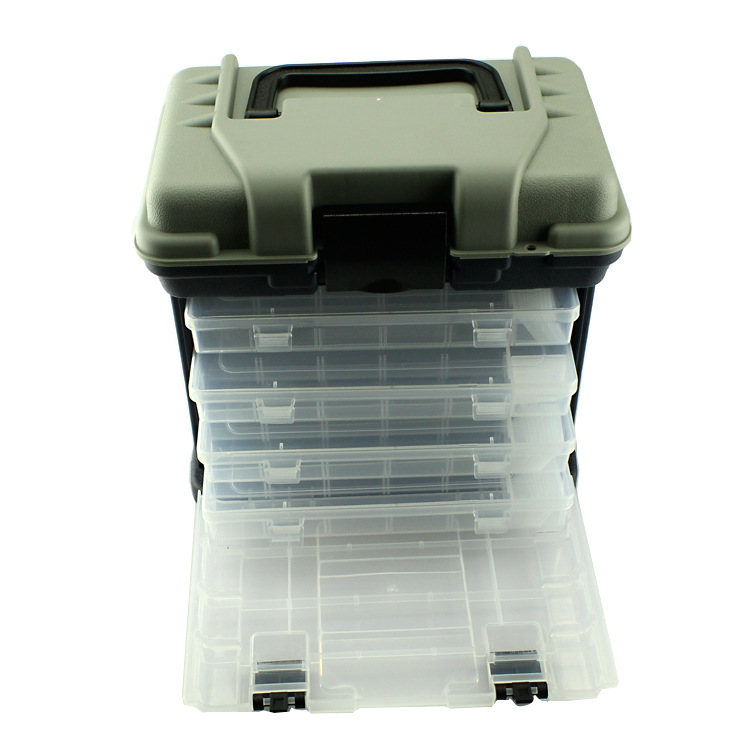 Kotak peralatan memancing multifungsi, kotak 4-lapisan memancing batu kotak peralatan memancing Jalan