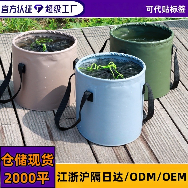 Ember Air Luar Ruangan Ember Ikan dengan Jaring Penyimpanan Ember Air Lipat PVC Ember Ikan Hidup Alat Memancing