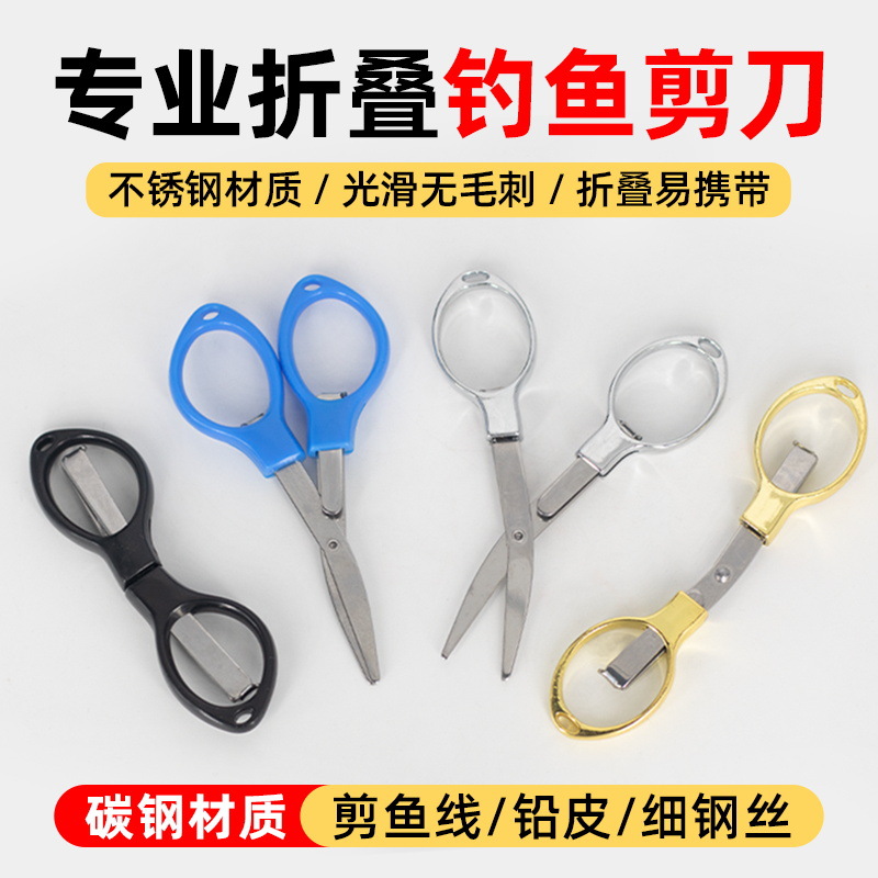 Gunting baja tahan karat untuk memancing, gunting kotak pancing multifungsi yang dapat dilipat, gunting kecil portabel untuk peralatan memancing seperti tali PE dan kawat timah.