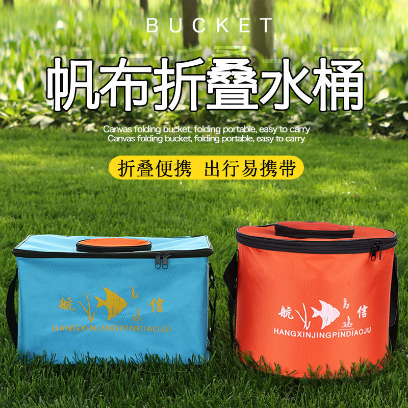 Ember Ikan Tangki Air Dilipat Portabel Ember Air Ikan Hidup Peralatan Memancing Kotak Peralatan Kotak Ikan Kanvas Rambut