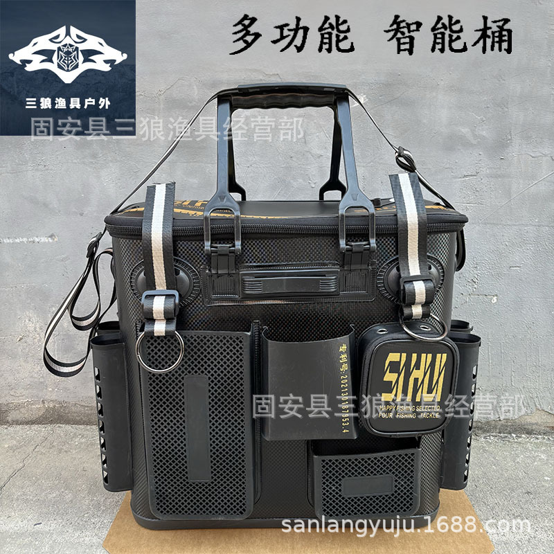 Ember pintar baru dengan saku samping pelindung ikan ember gantung troli banyak sisi saku hidup ember ikan batang ember kotak pancing grosir
