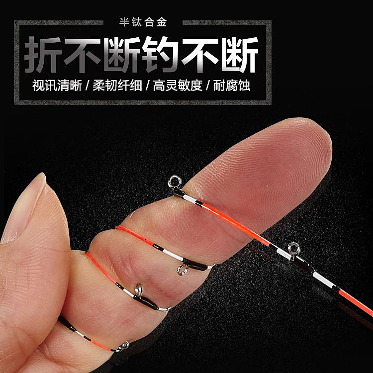 Semua batang logam campuran titanium sedikit tidak mudah rusak, batang rakit sedikit setengah titanium ekor lembut dengan bagian batang sedikit perahu tongkat rakit katup ujung joran pancing sedikit