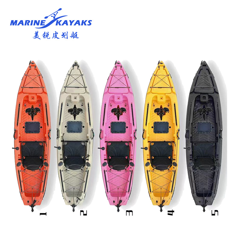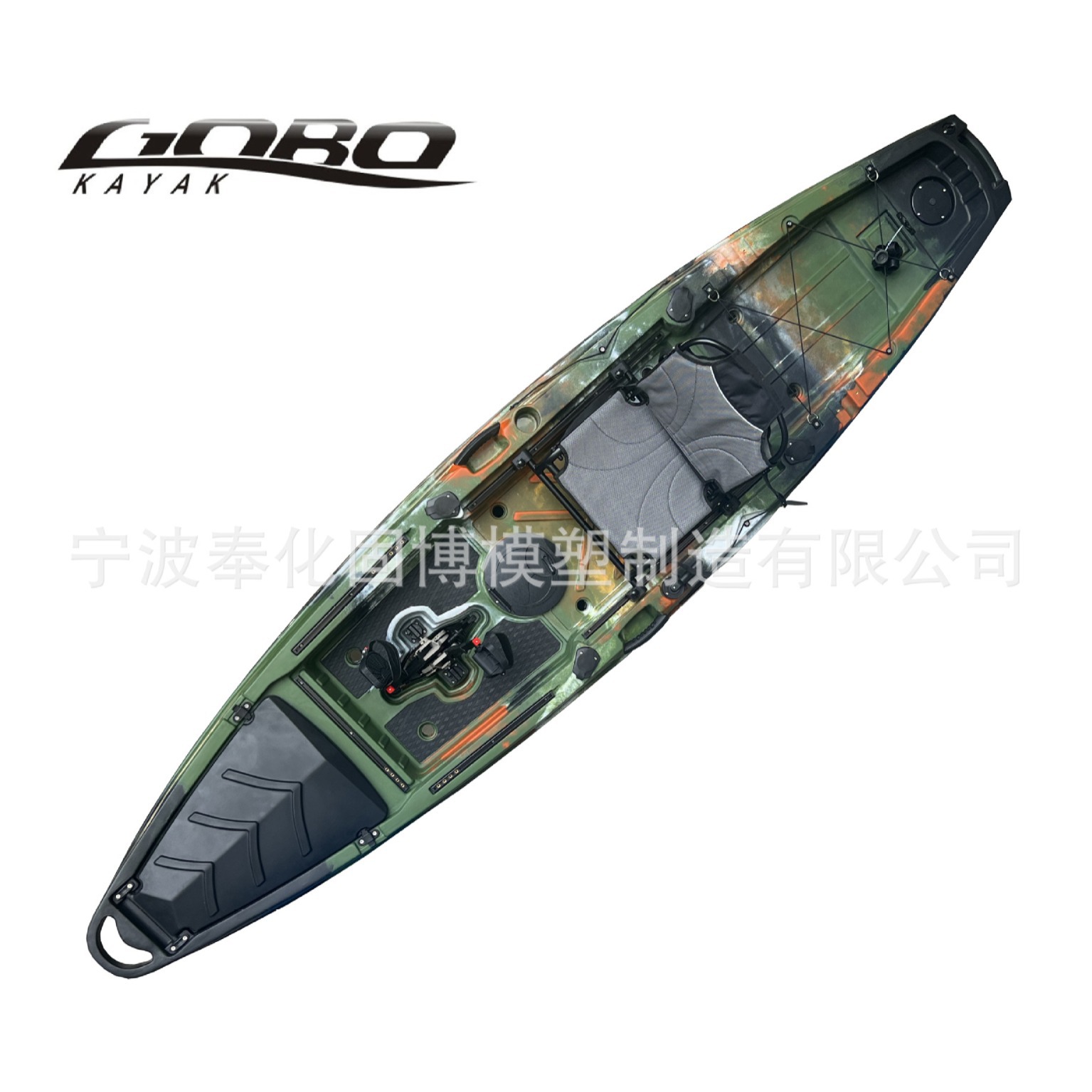 Perahu pedal tunggal plastik rotasi, kapal memancing, sistem pedal dapat disesuaikan untuk memancing di laut, perahu Luya, perahu kayak