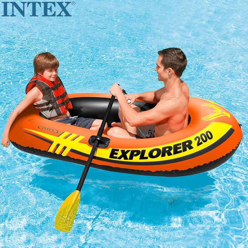 INTEX 58331 penjelajah dua orang tiga orang, perahu memancing tiup dua orang dengan dayung dan Pompa
