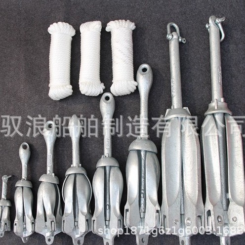 Perlengkapan memancing jangkar perahu karet perahu karet baja karbon khusus galvanis antikarat jangkar lipat dengan tali jangkar bola mengambang