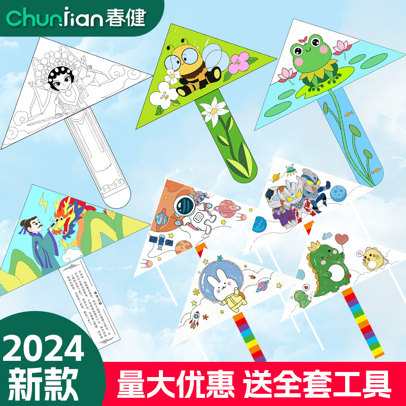 Layang-layang segitiga anak-anak yang dicat tangan grafiti diy mengajar orang tua-anak kosong menggambar mewarnai taman kanak-kanak grosir Weifang