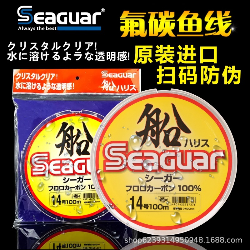 Senar pancing karbon Seaguar Sege Jepang, senar pancing laut dalam, senar pancing karbon fluorine kawat depan transparan 100 m