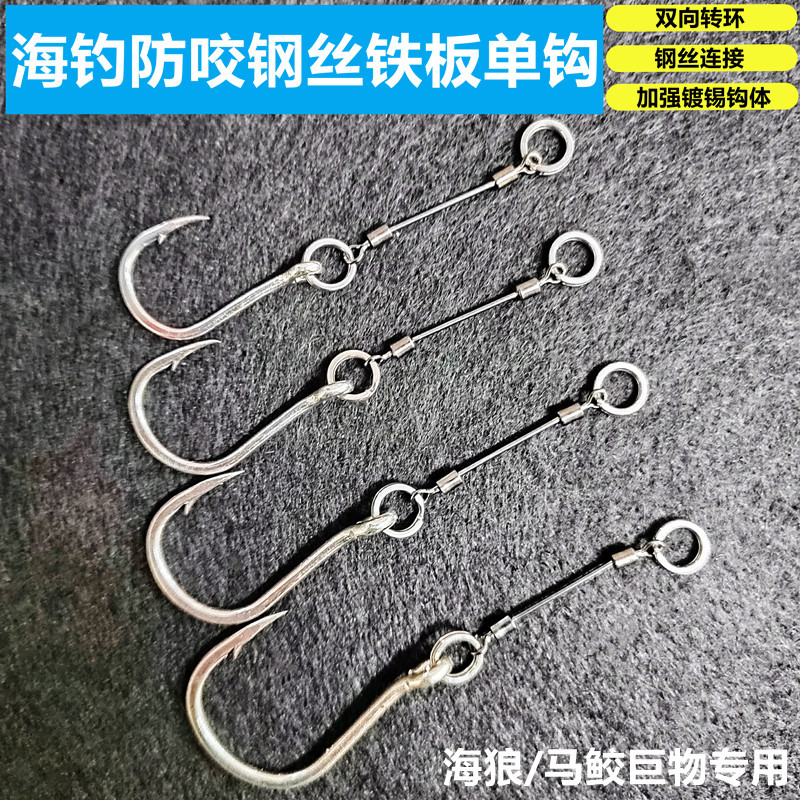 Umpan pancing anti gigit, memancing di laut kawat baja pelat besi umpan Luya kait tunggal kapal raksasa bantalan kait putar kuda karper laut Serigala