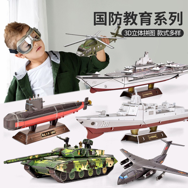 Mainan edukasi anak-anak, teka-teki 3d lintas batas menghadap tangki penerbangan pesawat motor kapal selam mobil diy splicing Sains dan Pendidikan